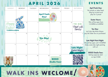 We are a walk-in-studio – open to everyone of all ages. In addition, we offer TO-GO KITS for painting at your place. Check out our Book A Party tab for party/group options.