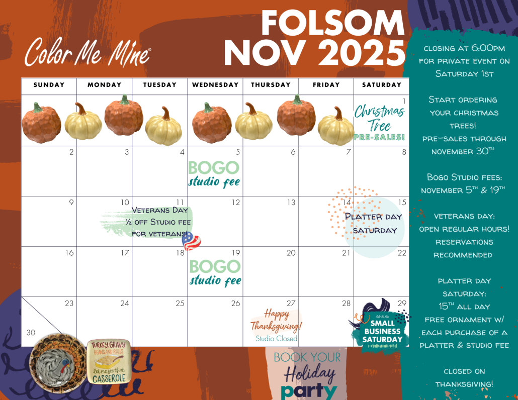 Reservations are highly recommended. Call 916-351-9008 to reserve your 2 hour painting session. There is a $12 Studio Fee along with price of selected pottery!